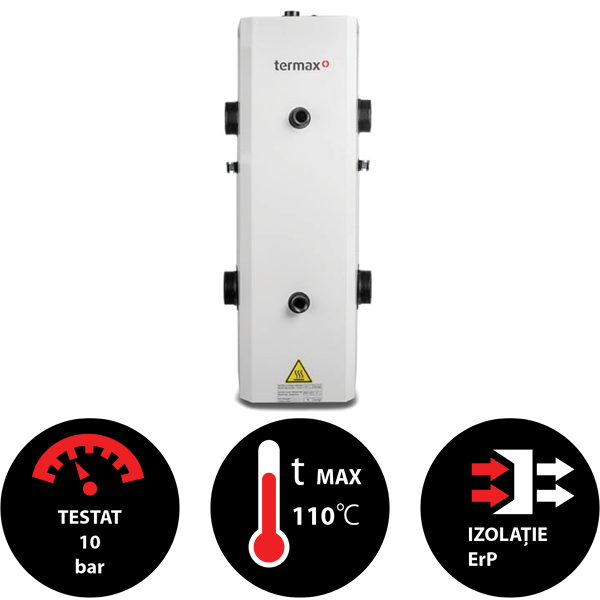 Butelia de egalizare Termax este concepută pentru instalatori, proiectanţi şi firme de instalaţii termice care doresc un separator hidraulic eficient pentru sisteme cu două circuite independente — primar şi secundar. Disponibilă cu racord de 2″ şi debit maxim de 14,3 m³/h, se potriveşte perfect pentru instalaţii cu putere între 150 kW şi 250 kW.