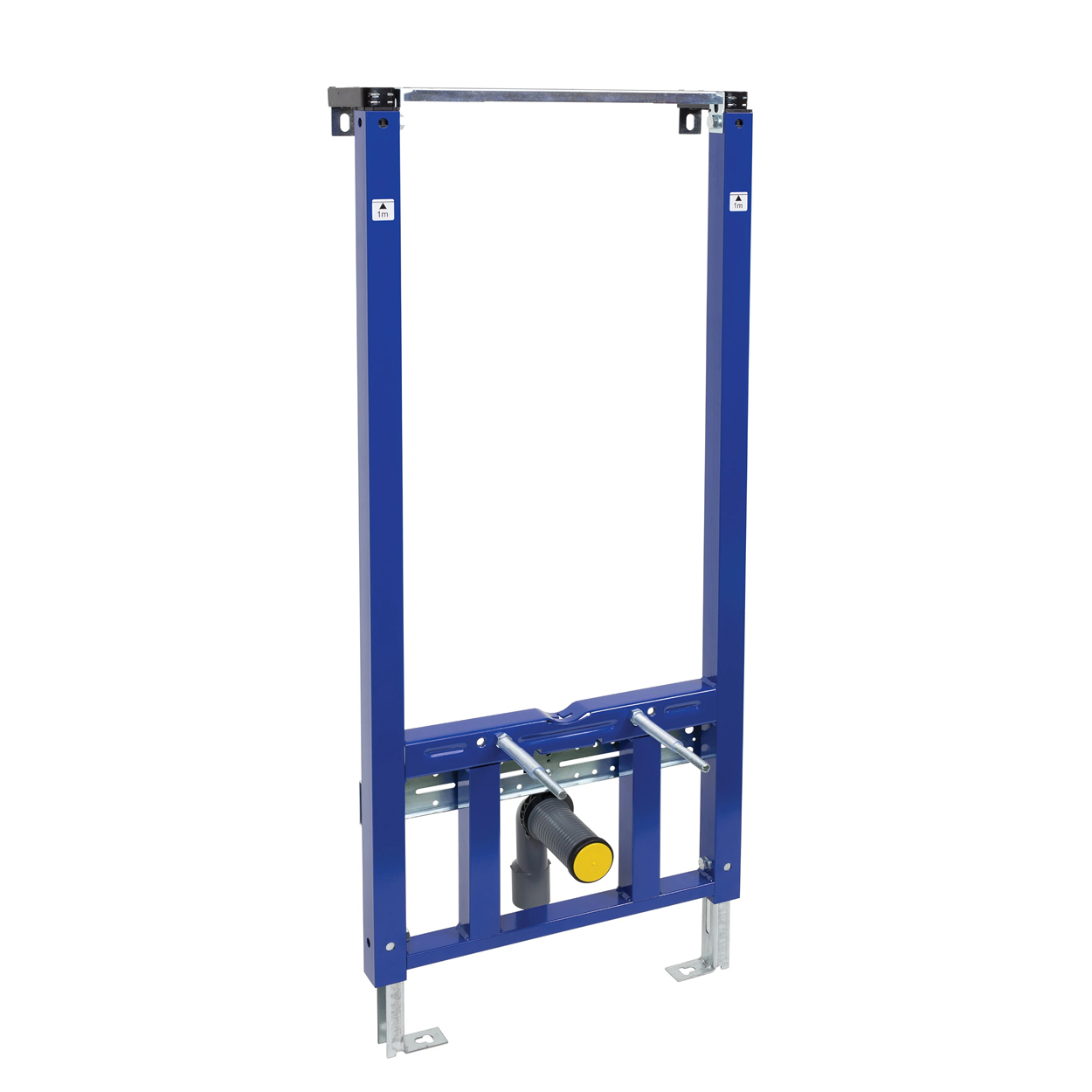 Cadrul de baza este realizat din profile 40×40 mm si are suprafata protejata de o pulbere filmata, albastra. Picioarele de sustinere sunt reglabile pe inaltime, de la 0 pana la 19 cm, iar dimensiunile suporturilor pentru montajul in perete variaza intre 12 cm si 20 cm. Traversa reglabila pe inaltime cu cot de evacuare pivotant DN40/50 si cu etansare pentru tevi racord DN32/40.