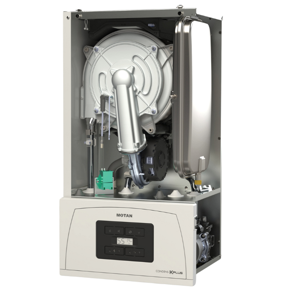 Motan Condens KPlus vine echipată cu un schimbător secundar supradimensionat pentru apă caldă menajeră, asigurând un debit constant de 12,1 litri/min la o diferență de temperatură de 30°C și confort sporit pentru utilizatori. Posibilitatea conectării unui crono-termostat sau a unui senzor exterior de temperatură permite reglarea precisă a funcționării.
