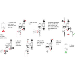 - Curățare periodică: Pentru a maximiza eficiența filtrului anti-magnetită Fernox TF1 Sigma, este recomandat să efectuezi o curățare periodică a filtrului. Aceasta va asigura o funcționare optimă și va prelungi durata de viață a întregului sistem.